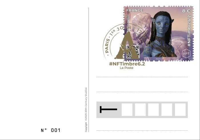 The #NFTimbre6 series is made up of 4 blocks sold individually or as a pack, one of which includes postal stationery pre‑cancelled in hot foil. Each NFTimbre consists of 2 products: a block of one numbered stamp and its associated NFT.